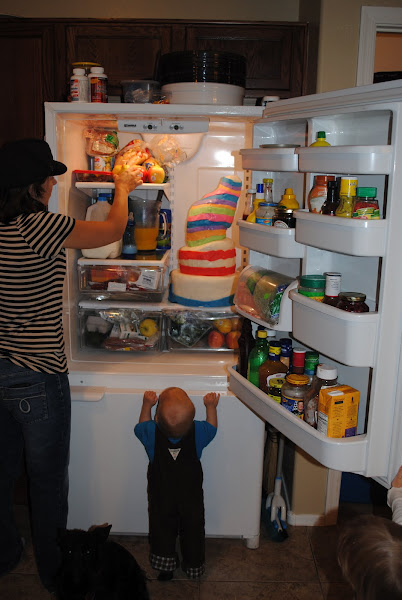 2 days before his party I had to start on the cake. 1 day to cook the cakes (all 7) and the next to do fondant and decorate the cake. It was so big, we had to throw out half the food in the fridge to put it in to keep it cool over night.